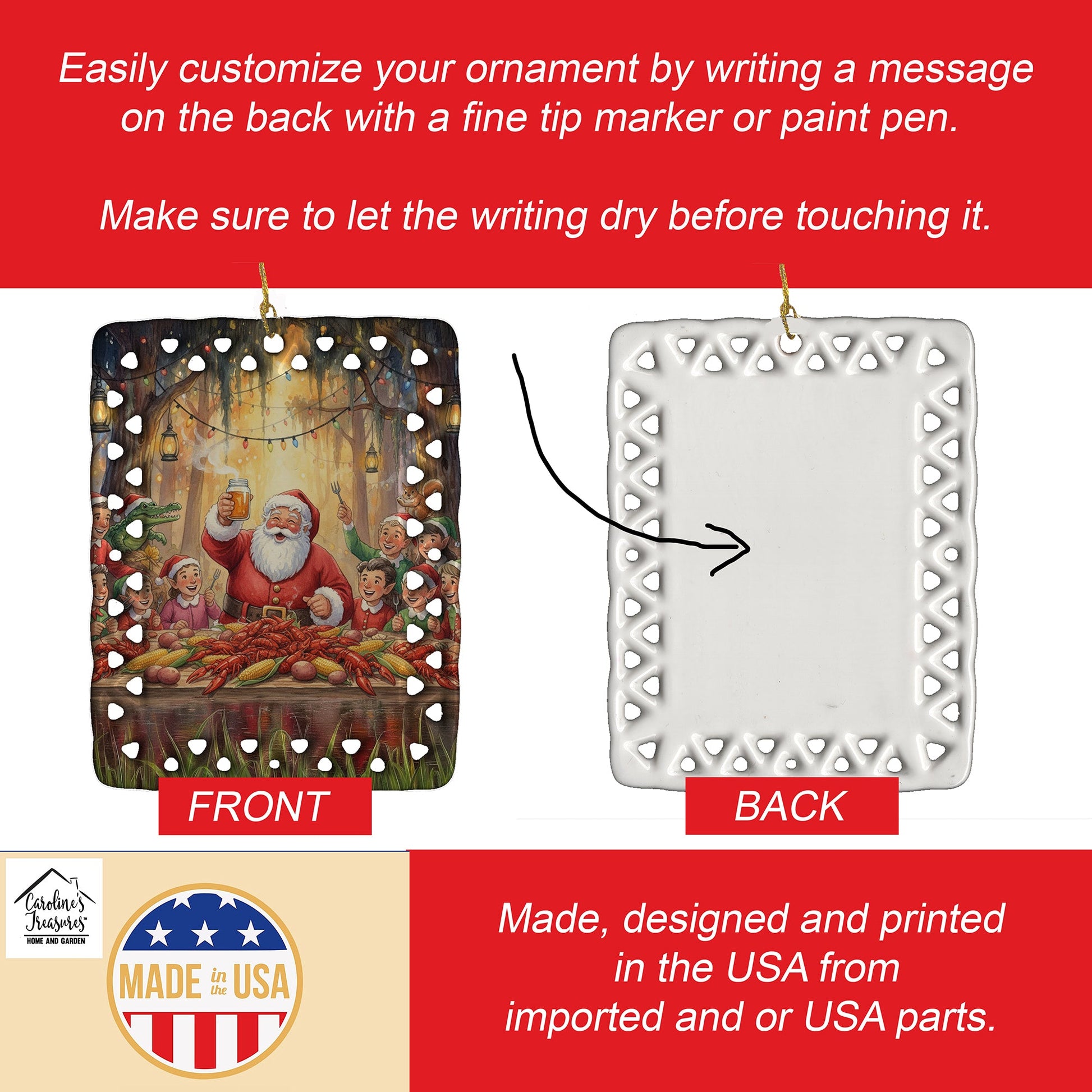 Celebrate Christmas with this Christmas Ornament. Add a unique, personal touch to your holiday decor with our Rectangular Lattice Porcelain Ornament. Perfect for creating cherished memories, this high-quality ornament shines under festive lights, reflecting warmth and joy throughout your Christmas tree. Crafted with a glossy finish, it showcases vibrant, full-color artwork contributed by our talented artists, ensuring your tree is adorned with a burst of color and holiday spirit. What sets this Porcelain Ornament apart is its customizable white back. Use a paint pen or permanent marker to write a heartfelt message, commemorate a special year, or mark an unforgettable date, turning this ornament into a keepsake that will be treasured for years to come. For best results, allow any personalization to dry thoroughly before handling. Each ornament comes complete with a delicate gold cord, making it easy to hang and display. Proudly made in the USA, this ornament measures 3.375 x 2.625 inches and is a thoughtful gift for pet sitters, teachers, family members, or anyone who would appreciate a little extra holiday magic. Bring style, charm, and a touch of personal meaning to your Christmas tree with this beautifully designed ornament..