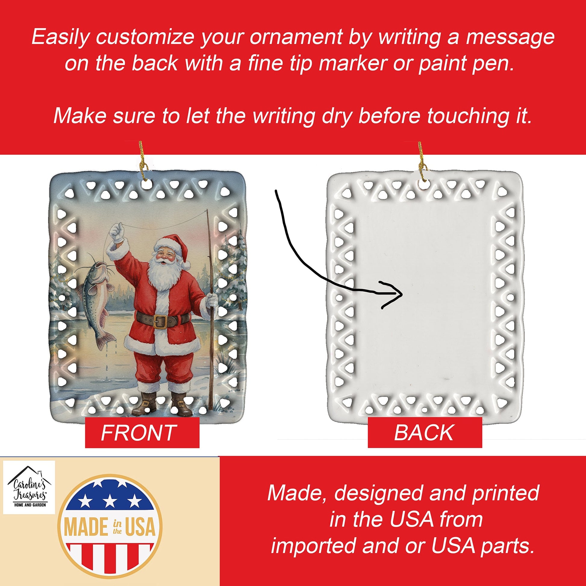 Fishing Santa Claus with Catfish Christmas Porcelain Ornament