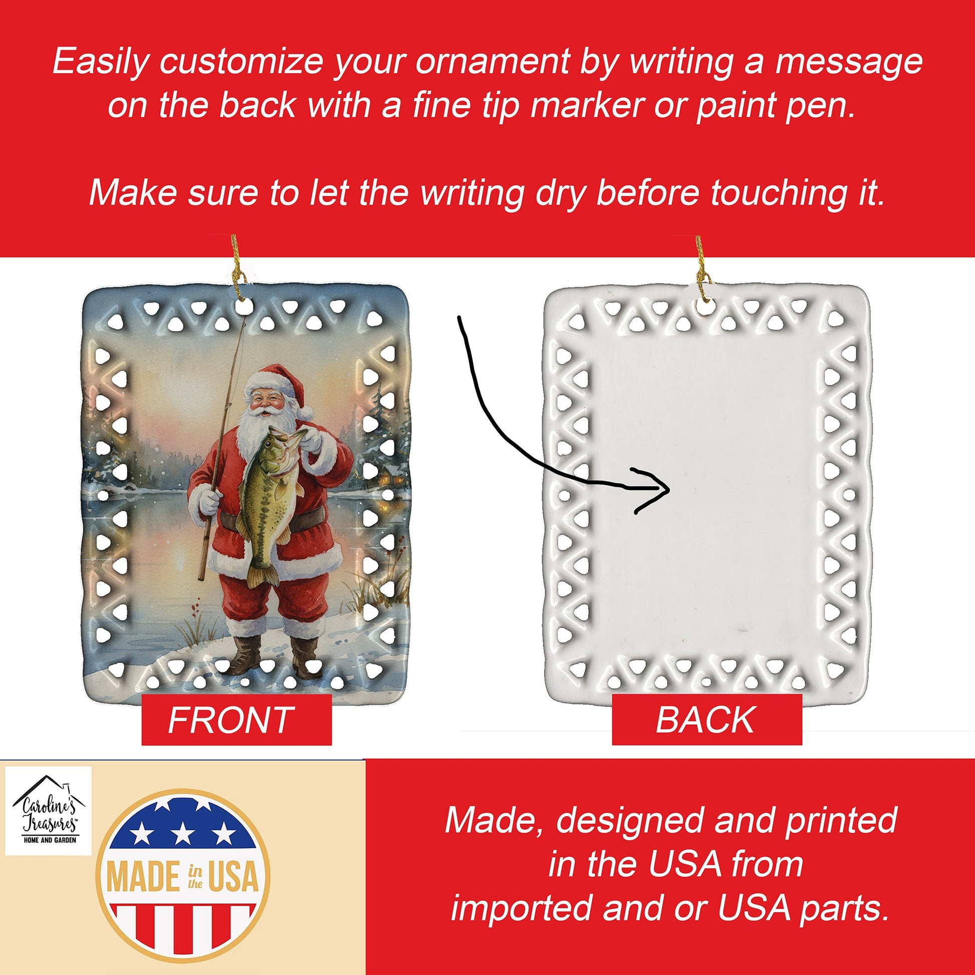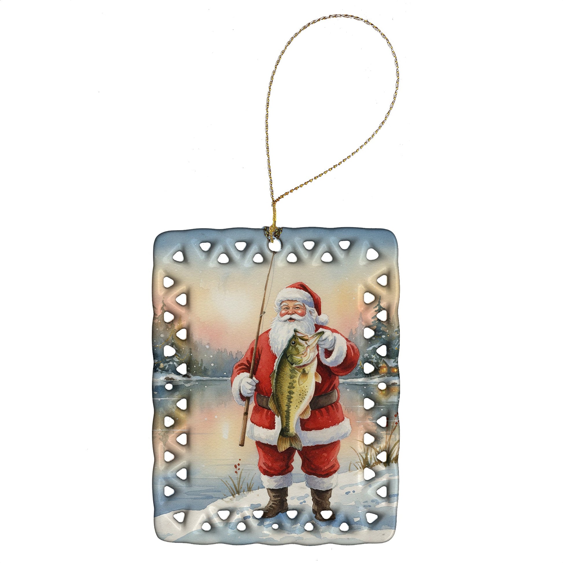 Fishing Santa Claus with Largemouth Bass Christmas Porcelain Ornament