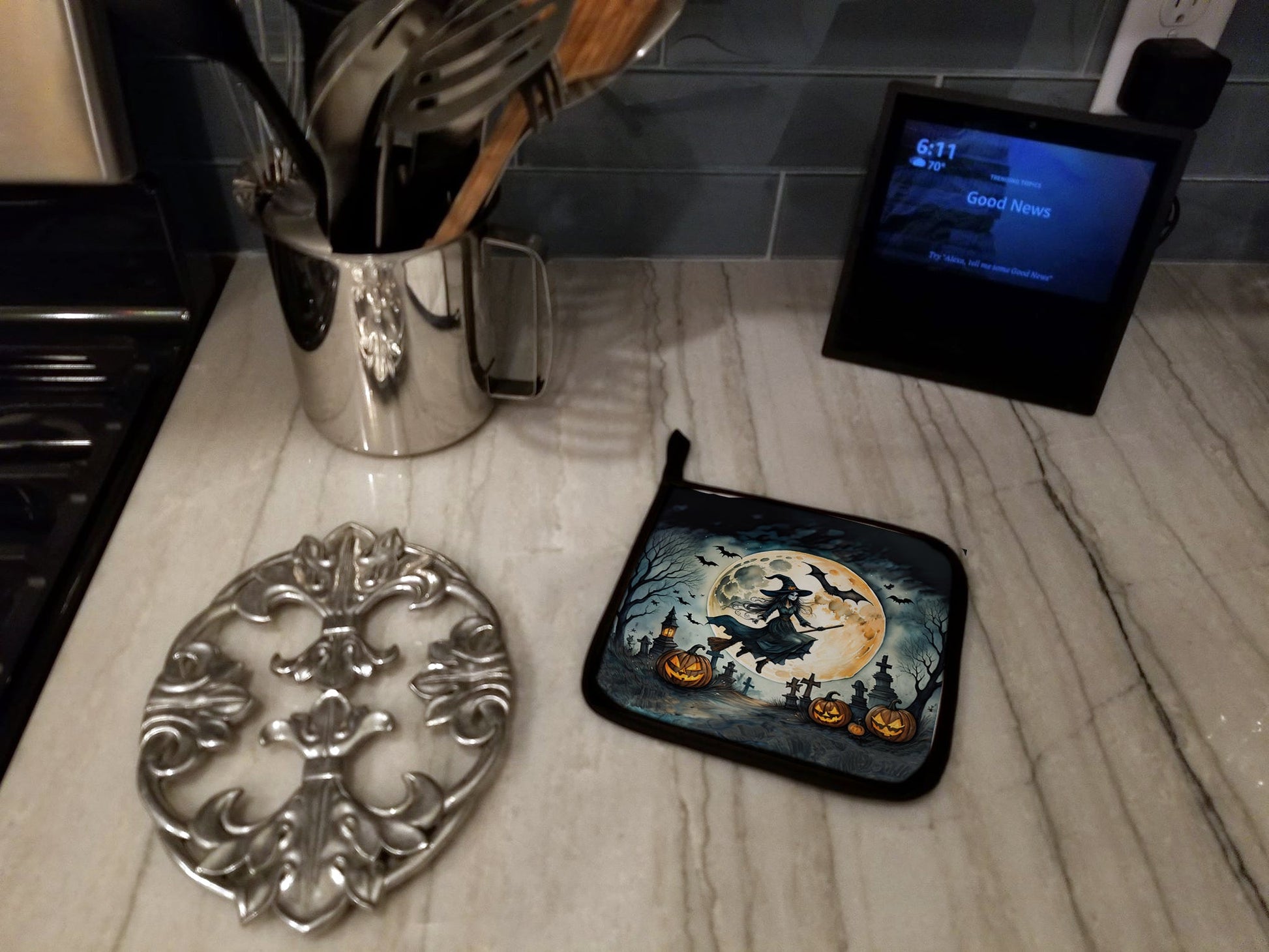 Flying Witch Spooky Halloween Pot Holders - Set of 2 Decorative Kitchen Helpers | Made in the USA