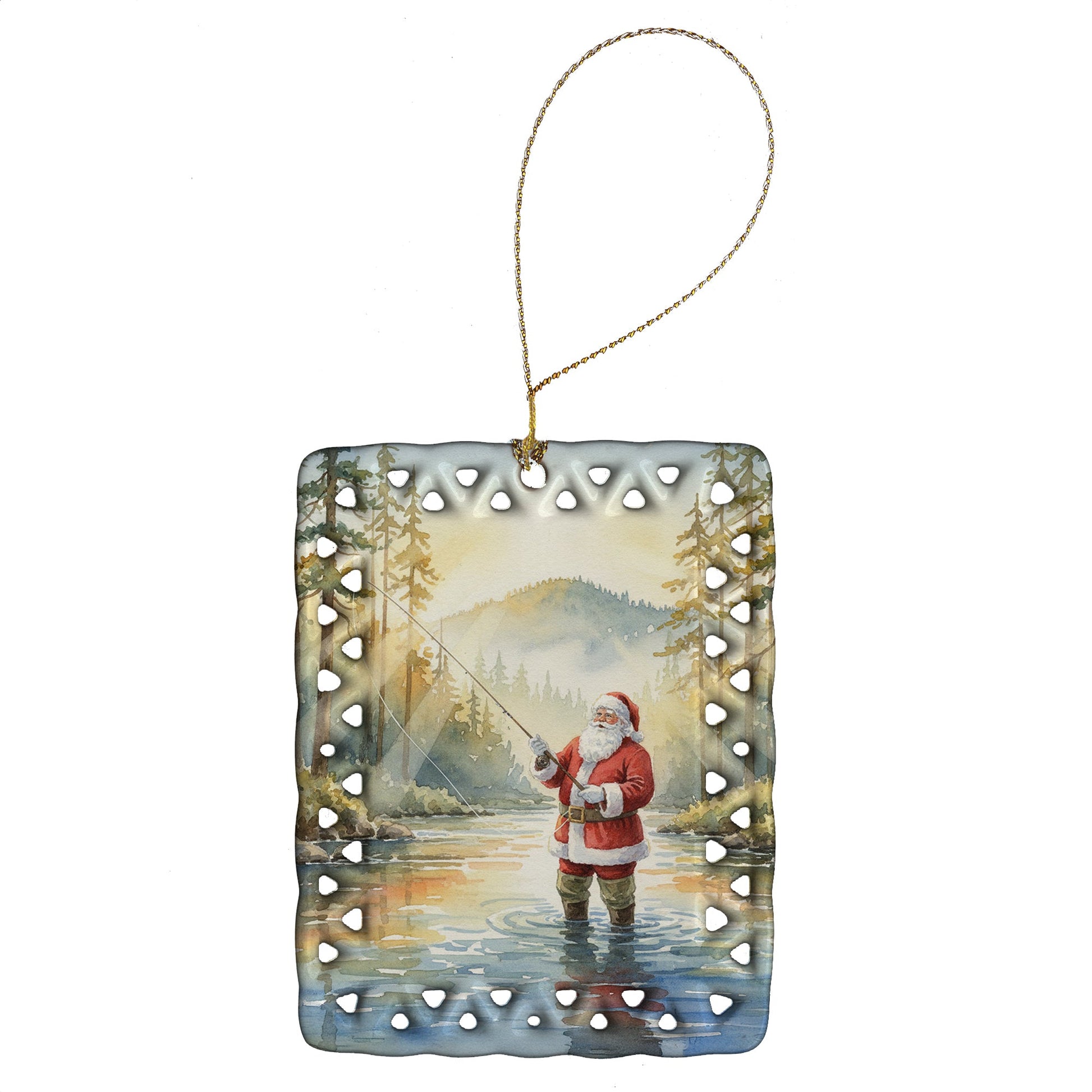 Santa Claus Fly-Fishing at Sunrise Christmas Porcelain Ornament