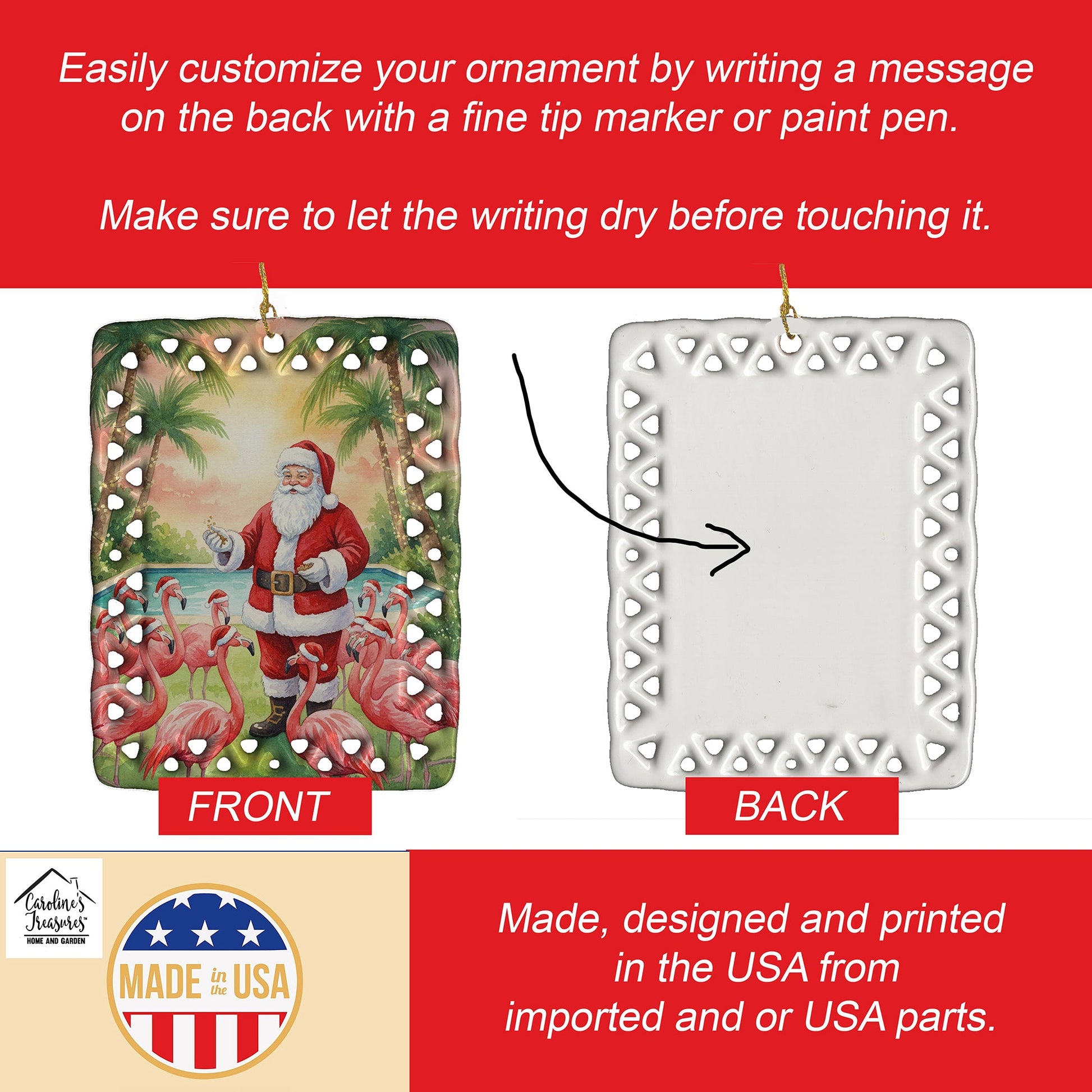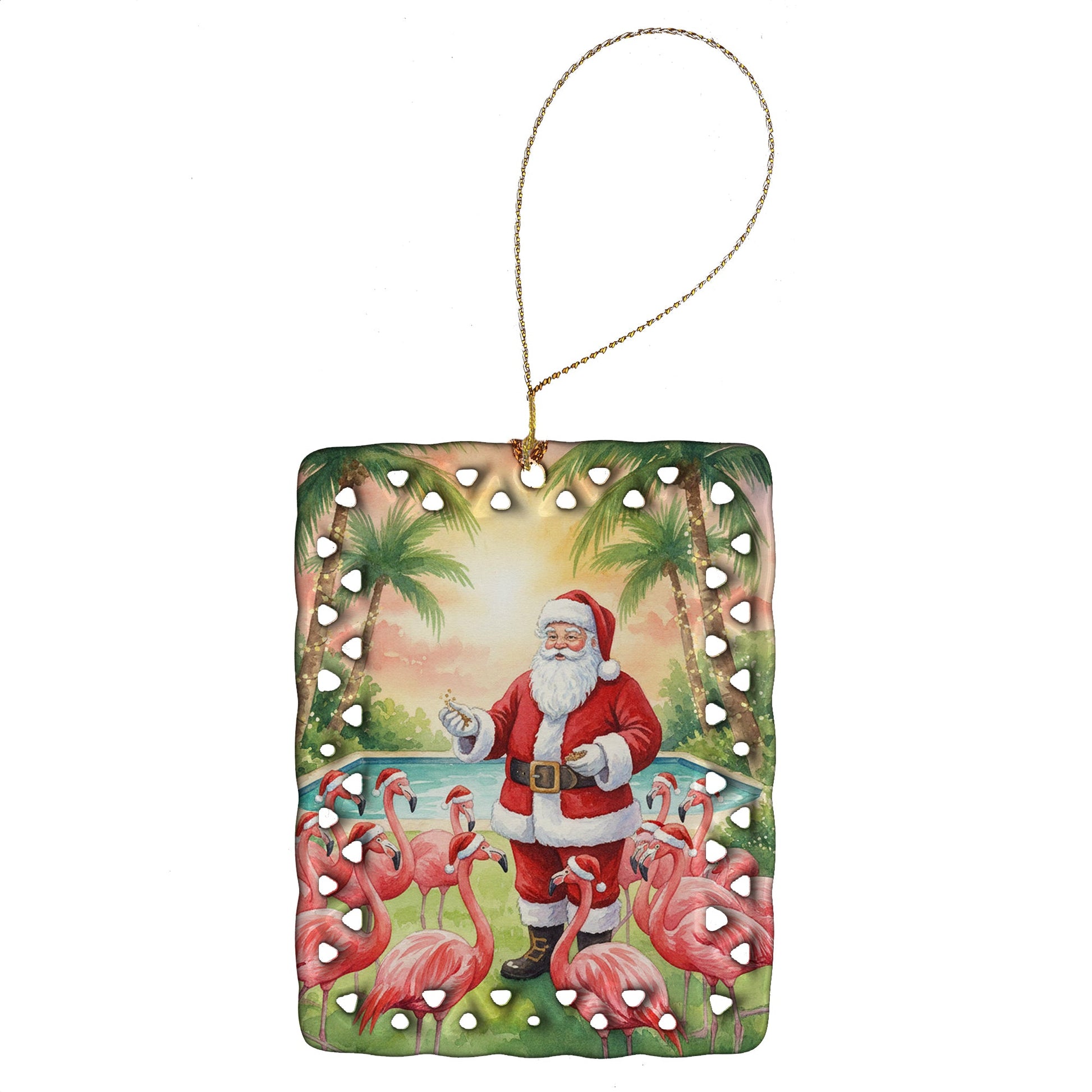 Santa Claus with Flamingos Christmas Porcelain Ornament